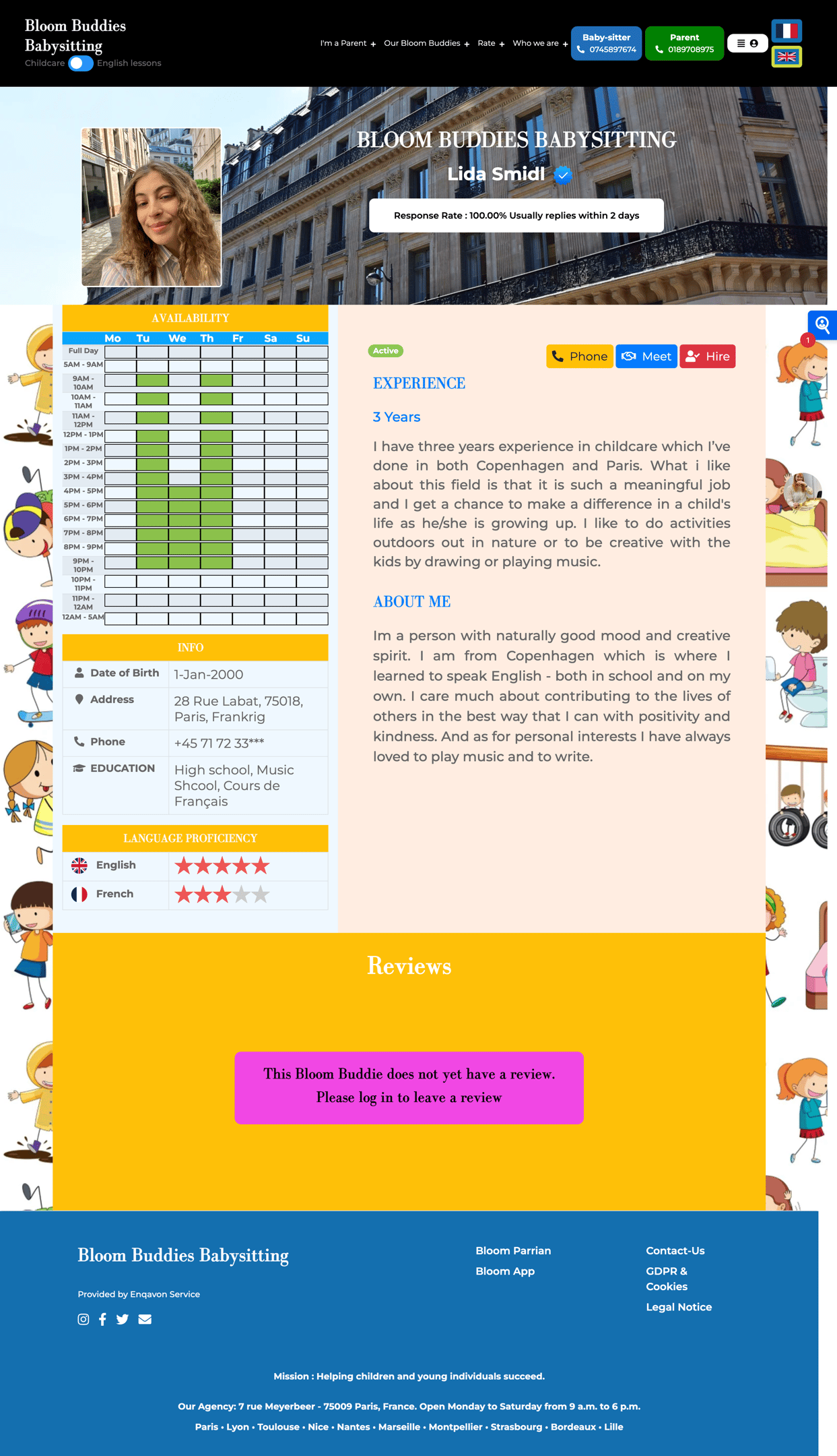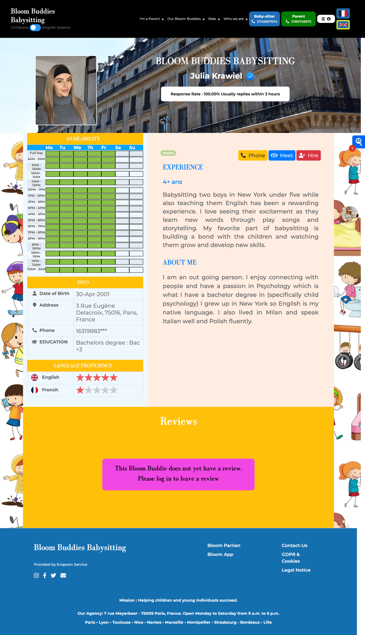 Bloom Buddies made our Paris trip unforgettable with their caring and professional babysitters. Highly recommend!